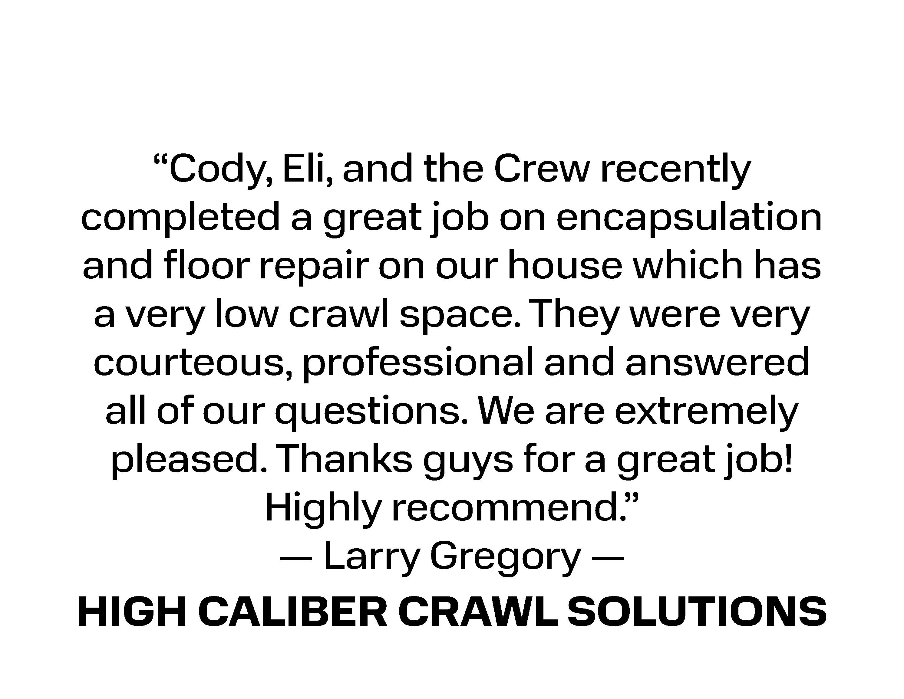 Long term results rely on the quality of the workmanship, installation methods and products used. If you are experiencing damage to your home or health, due to high levels of crawl space moisture, make sure you select a long term solution by using authentic Crawl Space Encapsulation® products.